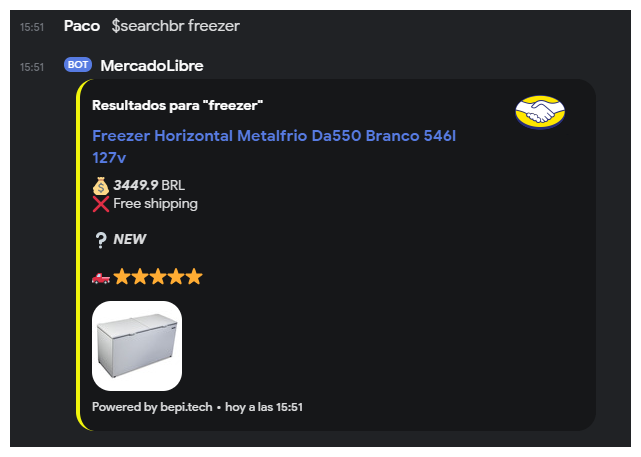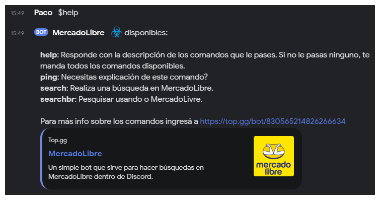 A simple bot that allows you to make searches in Mercado Libre inside Discord.